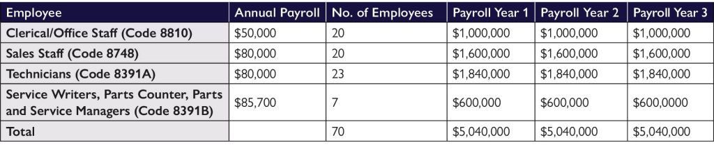 - Is your payroll data correct? Payroll data for the service department that includes both technicians and service drivers will cost you. The risk for service advisors working behind computer screens in an air-conditioned office is significantly lower than that of a technician working in the shop, facing physical risks from moving machinery and heavy lifting; hence, a lower premium rate is applied to advisors. Ensure they are classified differently.